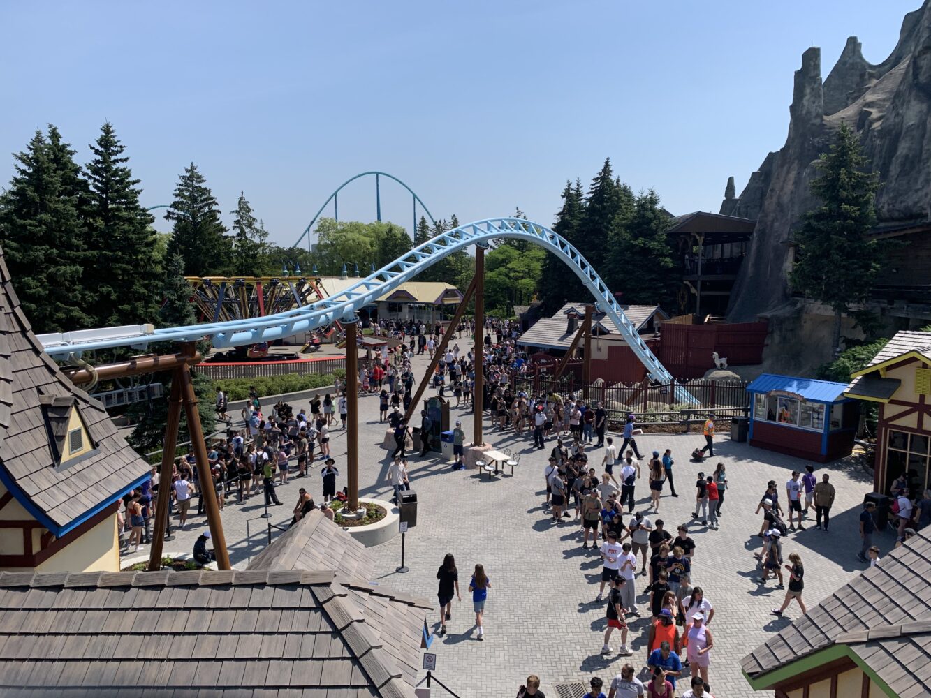 Kyle: The first thing I noticed was how prominent the roller coaster layout is on the International Street. This is the first thing you see when you enter the park and gets you excited to ride your bike right away. It was also incredible to see the first reversal coming out of the mountain. The number of roller coaster tracks that appeared in Wonder Mountain is crazy. Not only do you have Alpenfury launching and up on the mountain, but Vortex climbed it, where the guardian of Wonder Mountain is placed, and the weaving of the thunder running is inside and out.