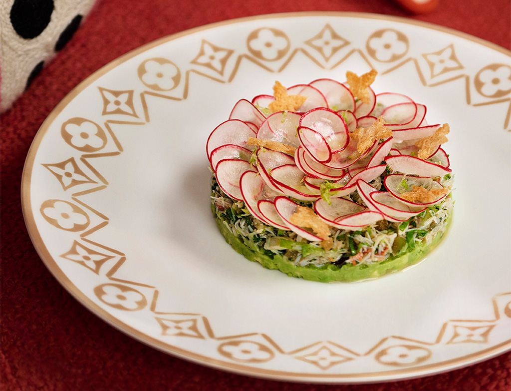 The menu at Le Café Cyril Lignac showcases a delicious range of French dishes, prepared with the finest ingredients. For early risers, the hotel offers a variety of breakfast options, including eggs royale (similar to eggs benedict), croissants, fruit plate, and avocado toast. Dinner and lunch options include crab salad, French sandwiches, beetroot salad, lobster rolls and Caesar salad. For a sweet after-lunch treat, try their Eton Mess, which is a blend of whipped cream, meringue and mango. Of course, all tableware is decorated with the famous Damier Ebene pattern for which the brand is well known.