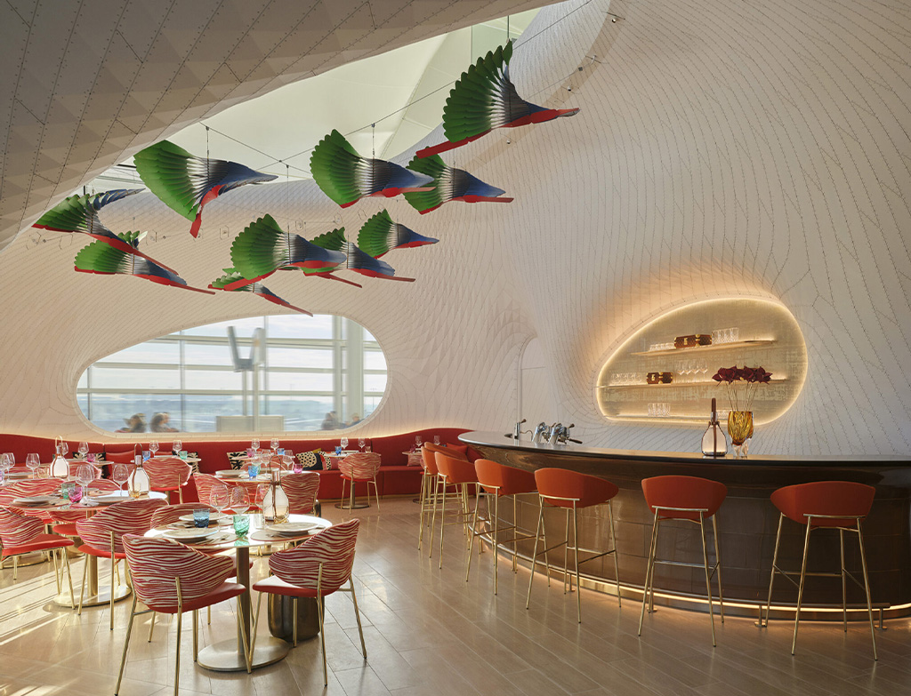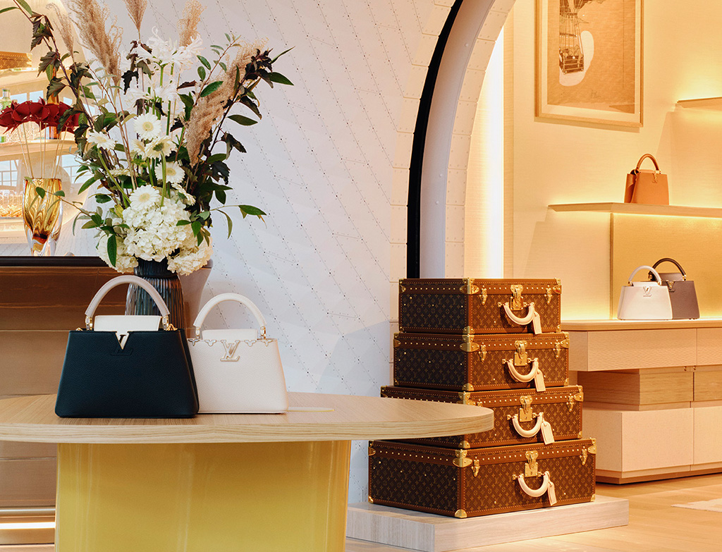 Le Café Cyril Lignac is the brand’s first UK catering venture, perfectly blending modernity with Parisian charm. Le Café Cyril Lignac is housed in the luxurious space of the Louis Vuitton airport boutique and features an exceptional aerodynamic design. The façade was designed in collaboration with renowned architect Marc Fornes. The look was created in collaboration with a New York-based studio to stand out in a busy airport environment. The store showcases a thoughtful selection of women's fashion and men's accessories in an intimate space inside.
